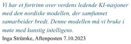 I en tid preget av teknologiske omveltninger, global konkurranse, maktkonsentrasjon og politisk uro, trenger vi et tydelig, verdibasert ståsted for hvordan vi skal praktisere ledelse og medarbeiderskap. For å navigere klokt og utnytte mulighetene trenger vi en solid forståelse for den grunnleggende styrken som ligger i Nordens kultur. Begreper som Den Skandinaviske Ledelsesmodellen, Medarbeiderskap, Den Nordiske Modellen og Den Norske Modellen fremhever ulike fasetter ved det som er unikt i vårt lille hjørne av verden. Disse forskjellige perspektivene har en felles historisk bakgrunn som er plattformen både for samfunnet og for arbeidslivets organisering og ledelse.